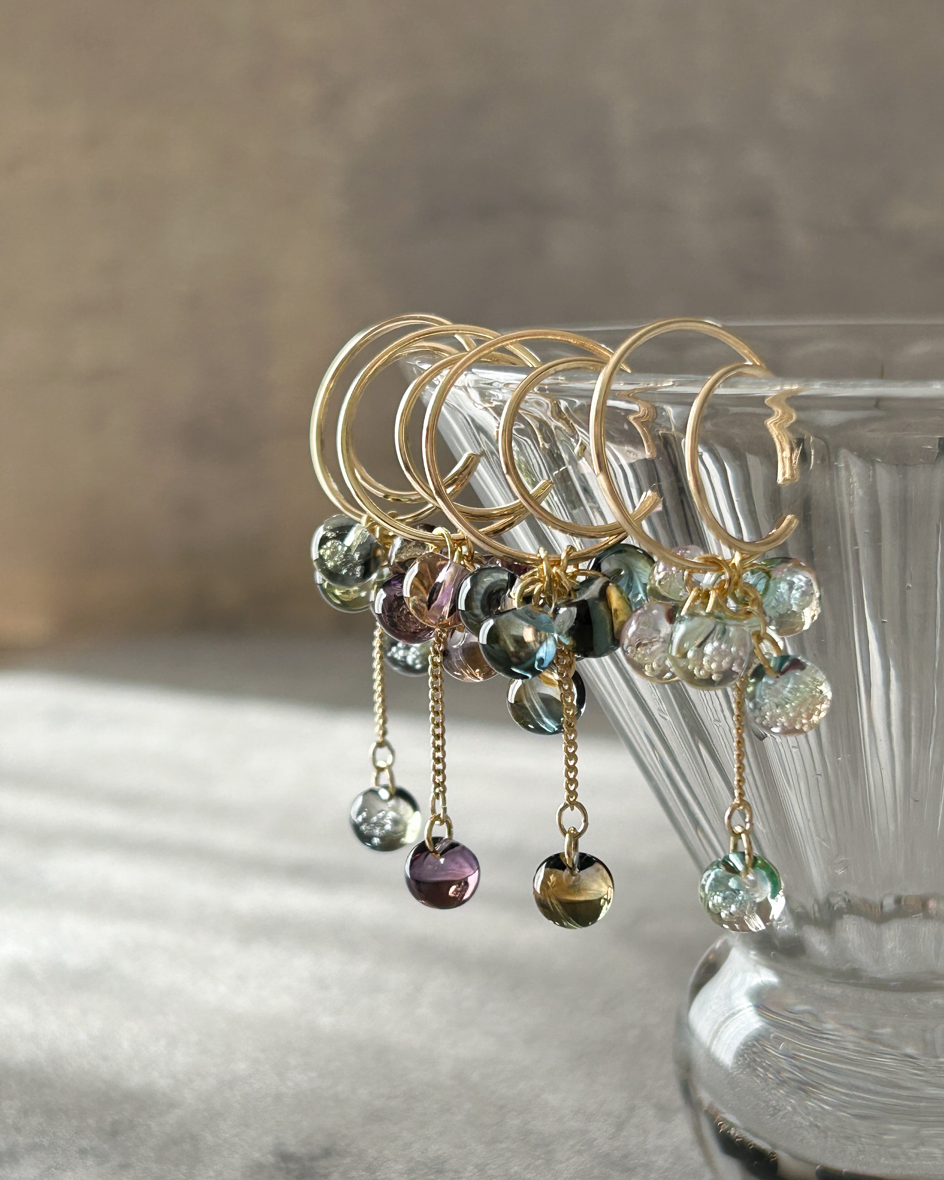 みずみずしいビーズを耳元に集めた 名前の通り『泡(bubble)』のように軽やかな耳飾りです。 光を受けるたび、クリア感が引き立ち 色がゆっくり混ざっていくような表情に。 肌や頬に落ちる柔らかな影も bubble ならではの美しさです。 さりげないのに、横顔が少し印象的になる——そんなバランスを大切にしました。 大人の肌にとろりと馴染むbubble。 その静かな魅力を感じていただけたら嬉しいです。 ご希望の金具とカラーを選択後、 お手続きにお進みください。 《カラー》 ①グリーングレー ②パープルオレンジ ③ブルーオレンジ ④シャボン ※ビーズの色味や入り方には個体差があります。 《サイズ》 全長約3cm(ピアス金具除く) (変色防止コーティング加工仕上げ) ※ 永久的な効果ではないため、気になる方は 市販のコーティング剤での事前ケアをおすすめします。 ご質問などございましたら InstagramDMまでメッセージくださいませ。