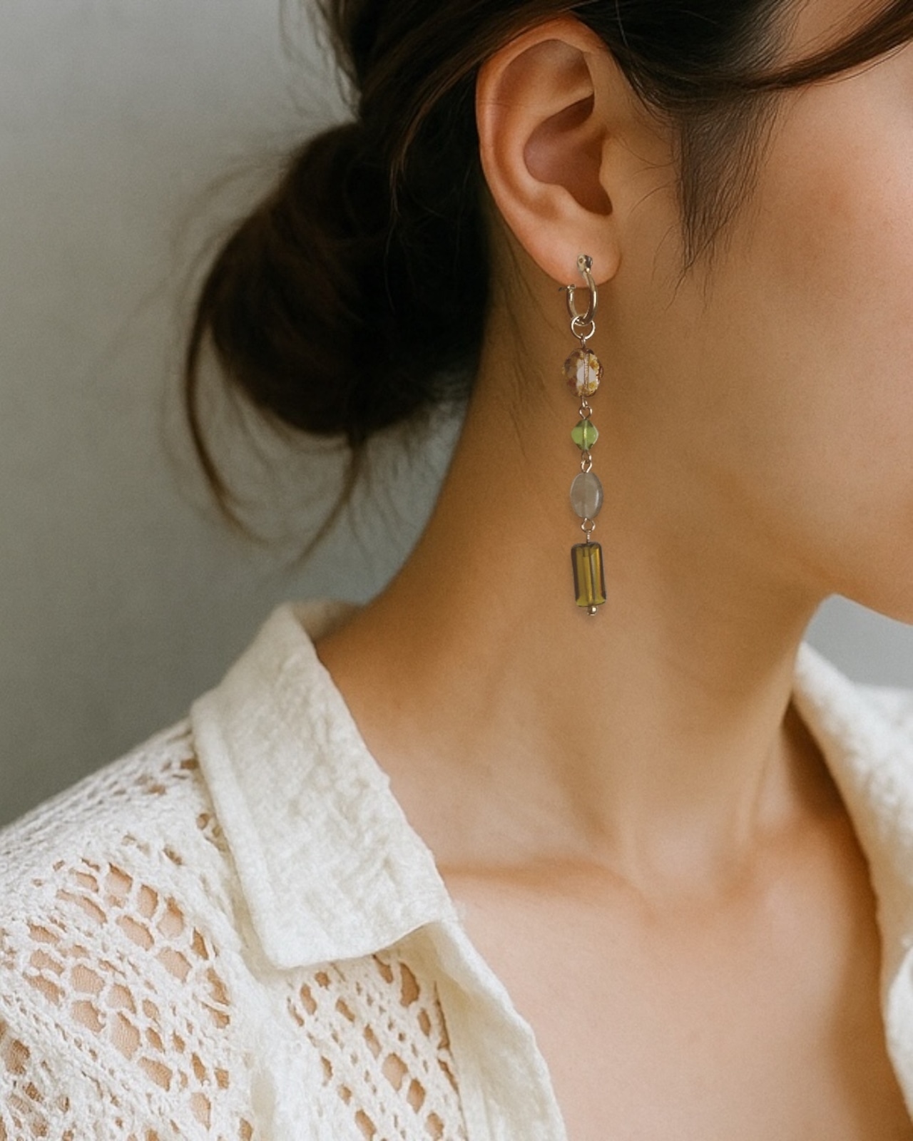 ゆるく流れる縦ラインが、顔まわりをすっと整えます。