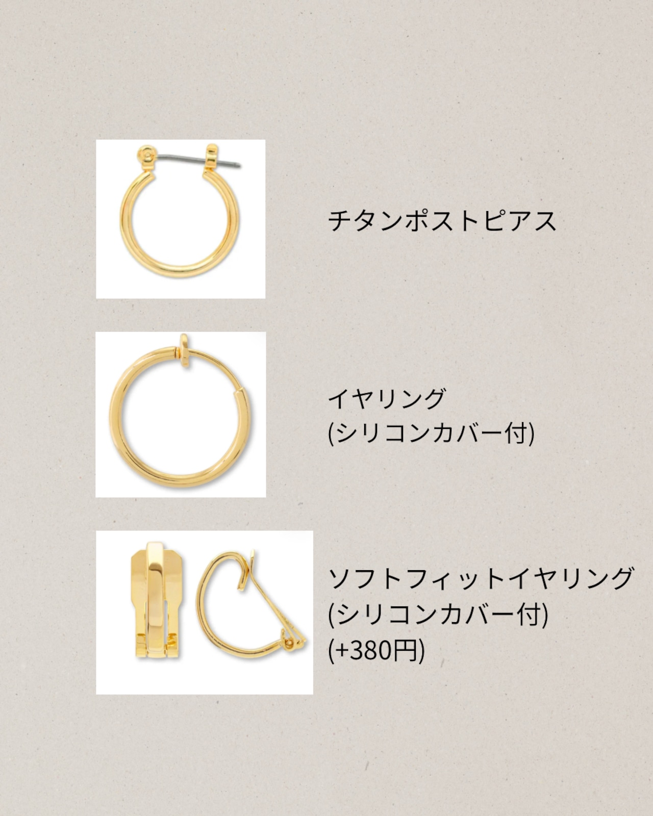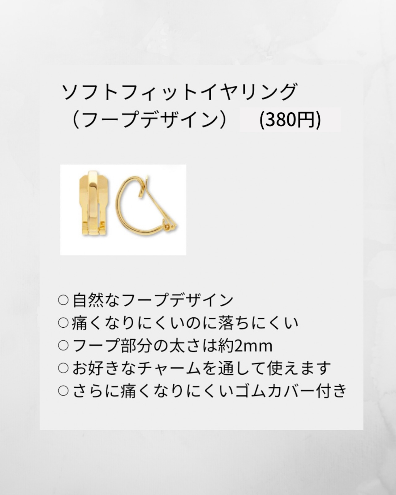 ・イヤリングは、痛くなりにくいと評判のソフトフィットフープタイプへの変更も承ります。