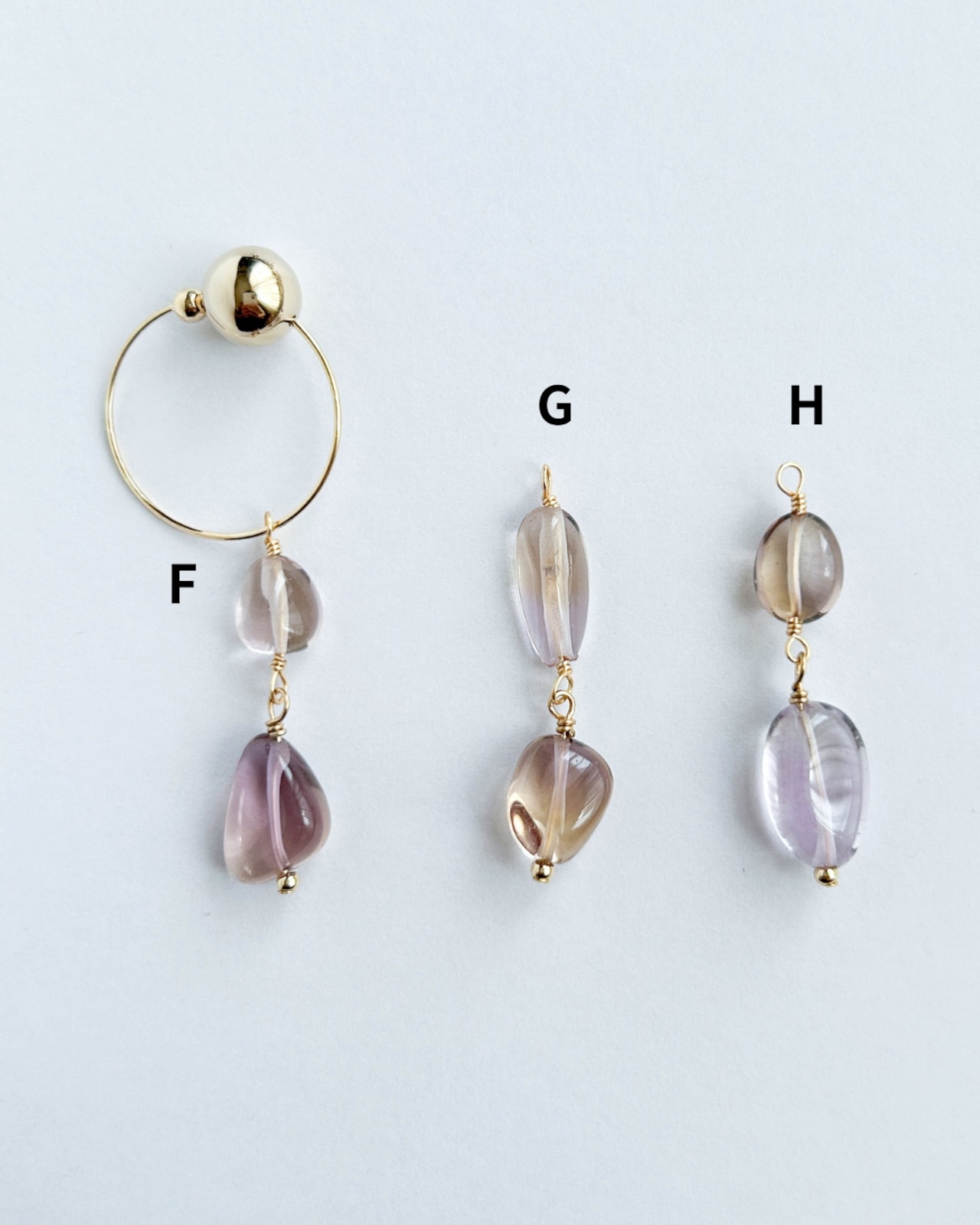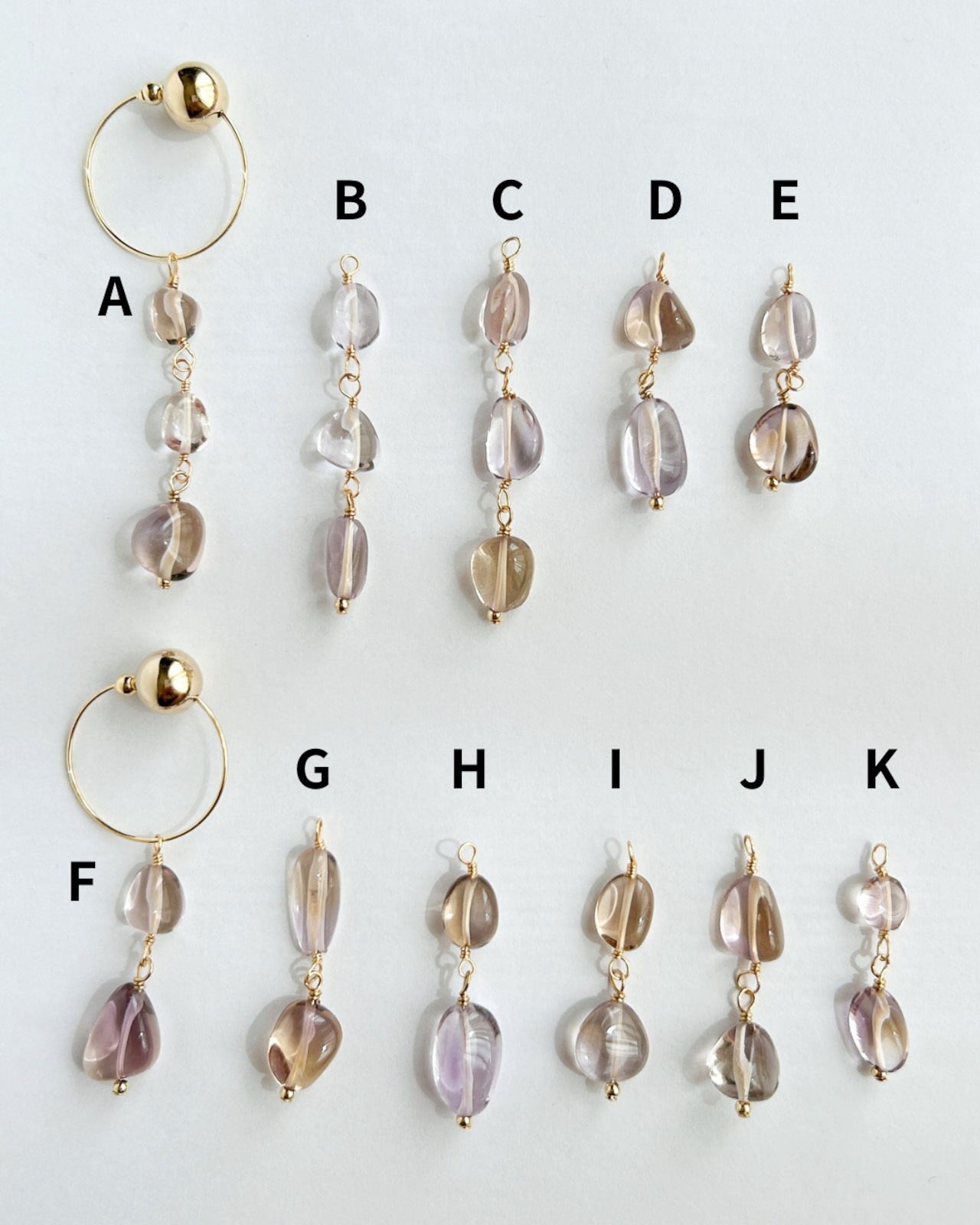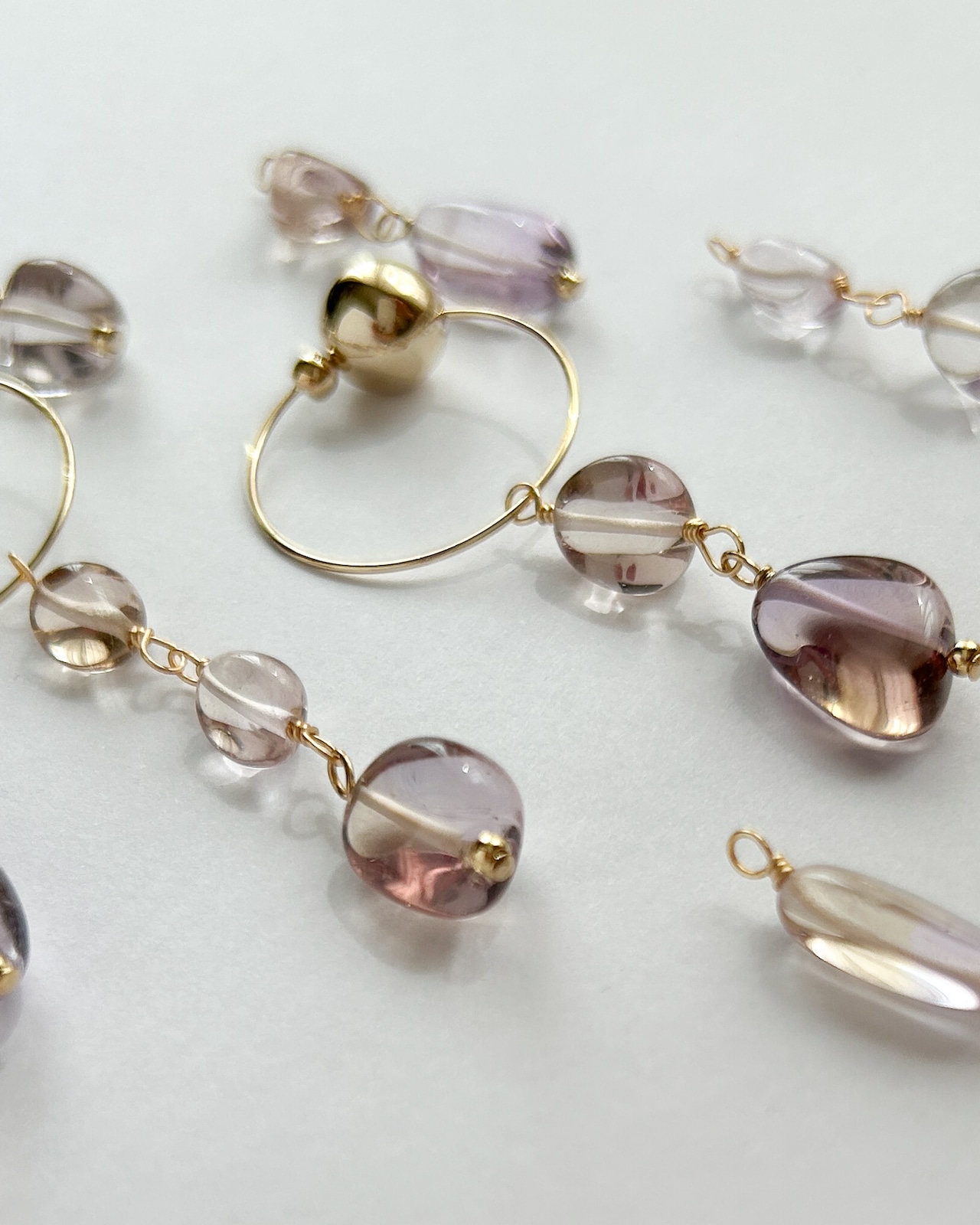 アクセサリーは大変繊細です。特に耳を挟む球体パーツは無理に引っ張ったり捻ったりせず、優しくお取り扱いください