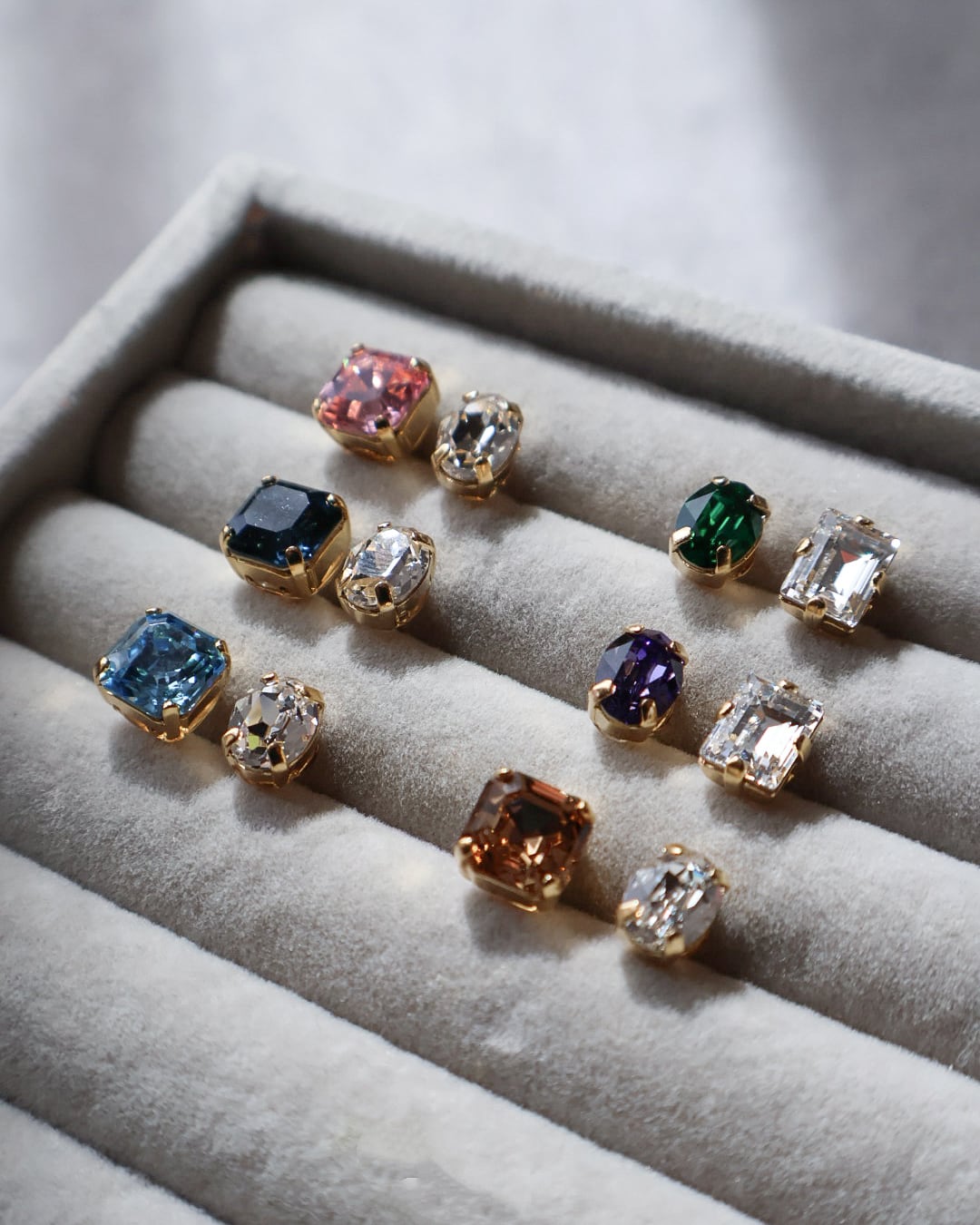 左右で色と形が違う組み合わせのピアスです。