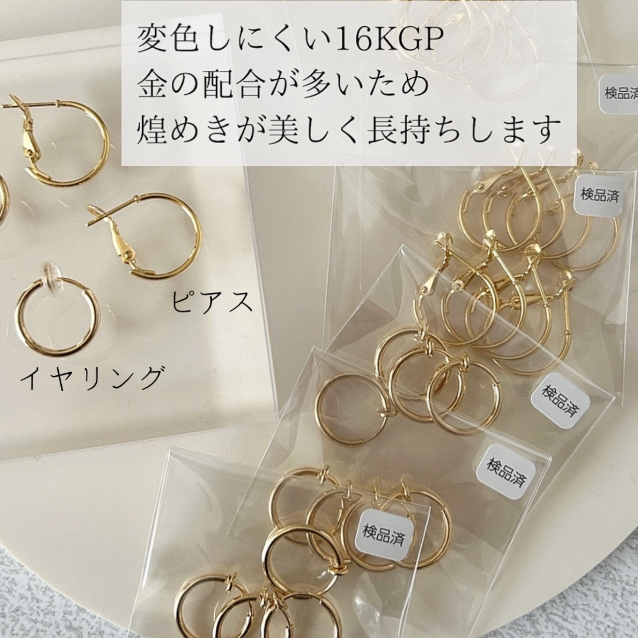イヤリング 15mm (合金+16KGP)シリコンカバー付