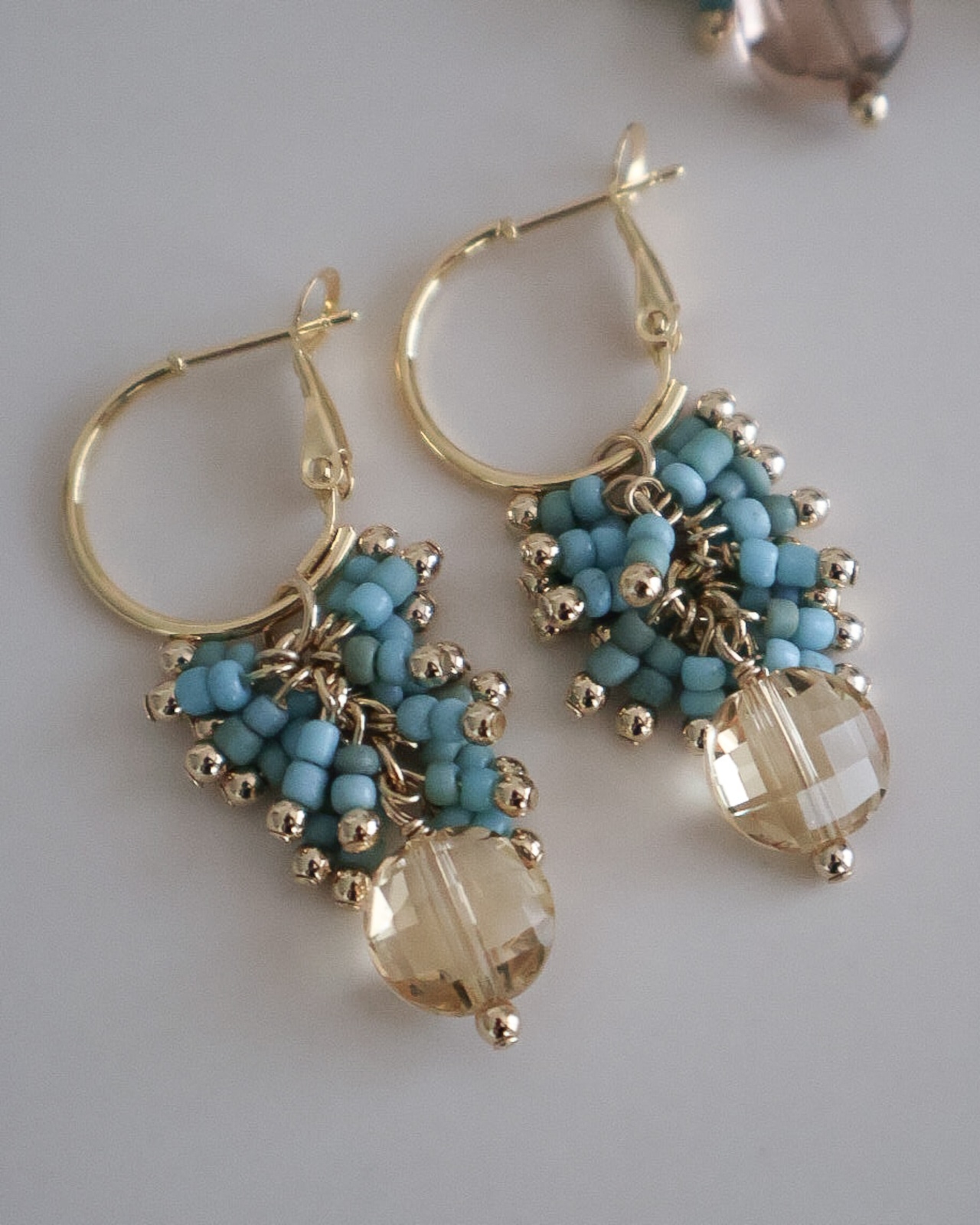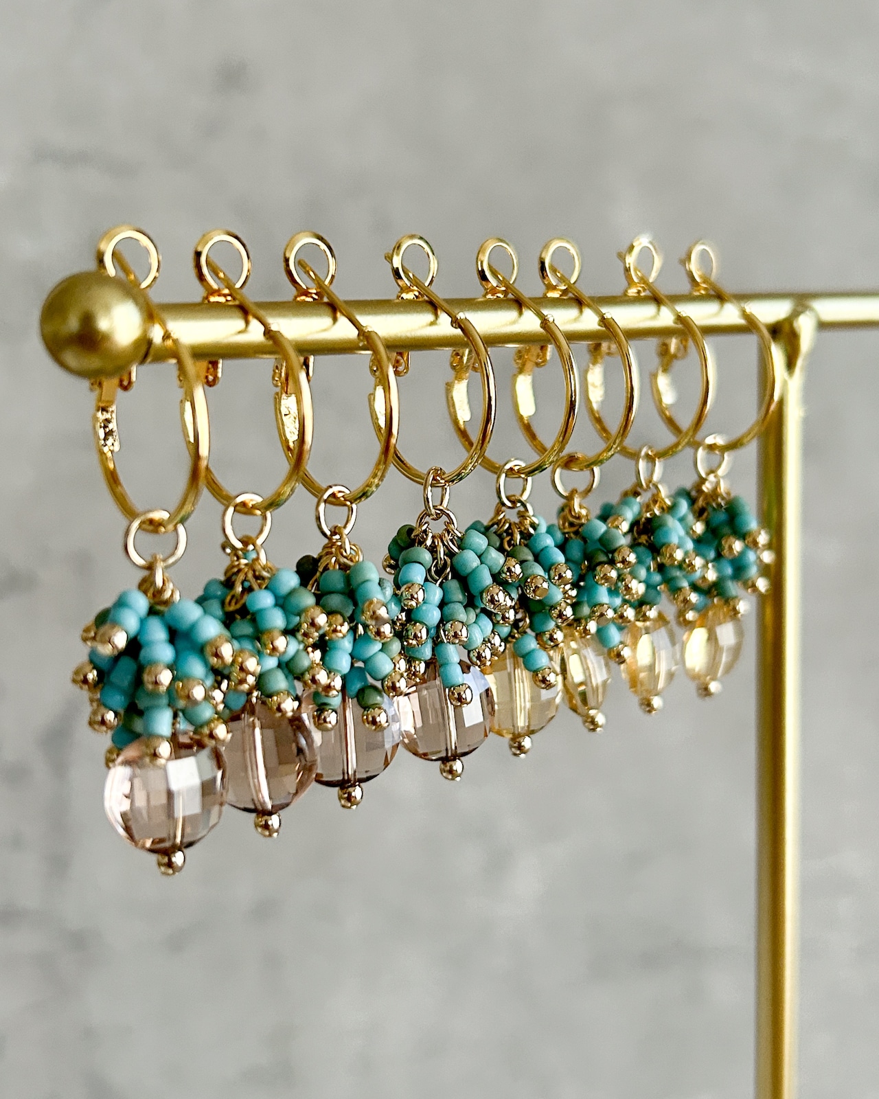 【シャンパンゴールド】turquoise glass hoop -ターコイズガラスフープ-