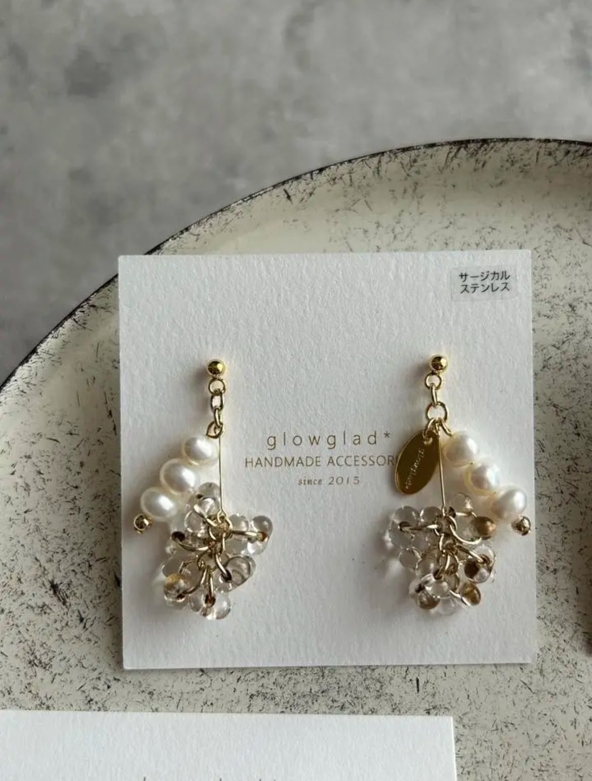 3枚目写真はフレンチフックピアス(ニッケルフリー)でお作りしています